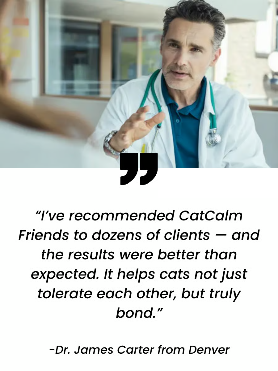 “Most behavior problems I see in cats stress, spraying, aggression can be eased with CatCalm™. In just 3 days, many cats become noticeably calmer and happier, even when other remedies haven’t helped.”